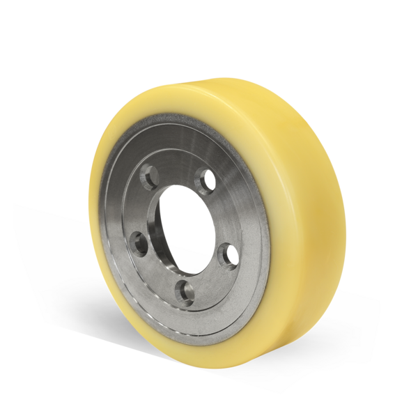 - Устойчивость к химическим веществам и маслам: Полиуретан не разрушается под воздействием многих агрессивных сред, что продлевает срок службы колеса в сложных условиях эксплуатации.