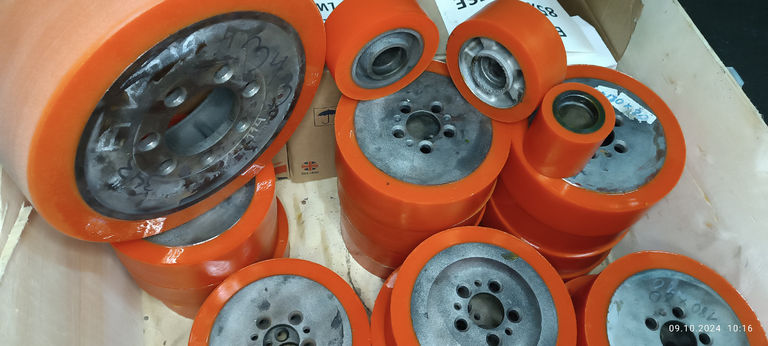 Мы располагаем собственным производством, специализирующимся на ремонте полиуретановых изделий. Полиуретан обладает рядом неоспоримых преимуществ для ведущих колес: