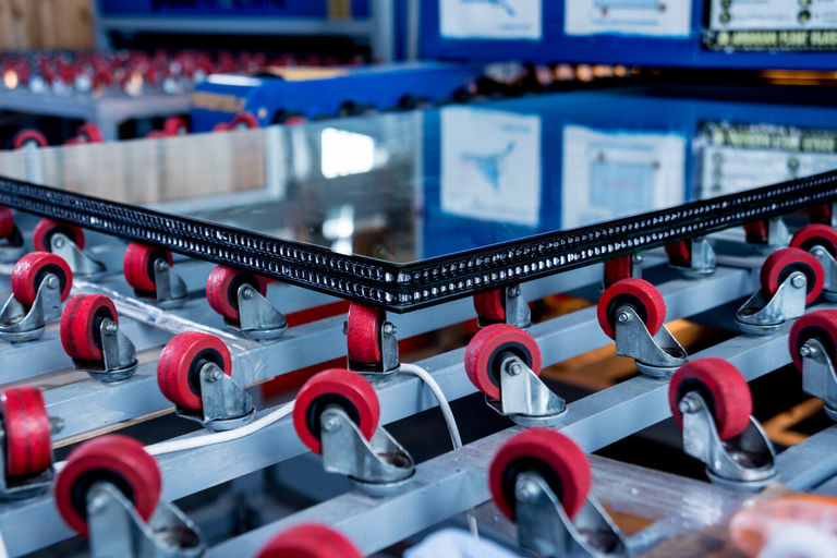 Конвейеры линии сборки стеклопакетов: Здесь ролики обеспечивают точное и плавное перемещение стеклянных листов, их позиционирование и стыковку, минимизируя риск повреждений.