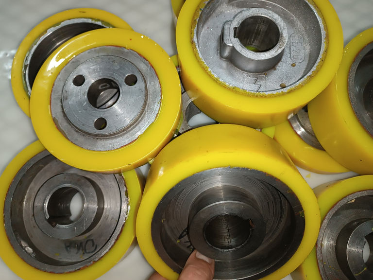 - Покрытие из полиуретана: Мы используем высококачественный полиуретан, который обладает превосходной износостойкостью, устойчивостью к истиранию, воздействию масел и химических веществ. Это обеспечивает надежное сцепление с обрабатываемой поверхностью, предотвращает проскальзывание и минимизирует риск повреждения заготовок. Полиуретановое покрытие также отличается эластичностью, что позволяет роликам адаптироваться к небольшим неровностям поверхности, обеспечивая равномерную подачу.