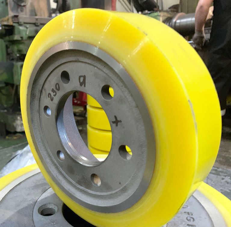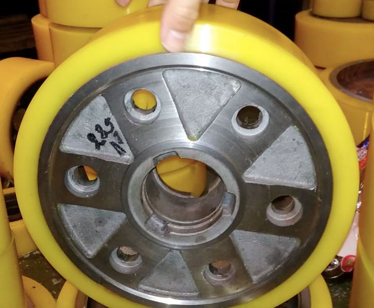 - Износостойкость: Вулколлановые колеса значительно дольше служат по сравнению с резиновыми аналогами, что снижает затраты на замену и обслуживание.